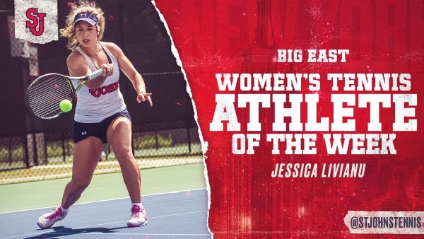 Jessica Livianu Named BIG EAST Women's Tennis Athlete of the Week Following a perfect week playing at the top position, Jessica Livianu has been awarded the BIG EAST Women's Tennis Athlete of the Week named by the conference's office on Wednesday afternoon.